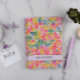 Brilliant and Bright, eye-catching and feminine watercolor circle themed NOTEBOOK PLANNER featuring a pattern inspired by the delightful world of bubble tea, incorporating warm and vibrant colours of green, orange, pink, yellow, and blue. with two line of custom text.