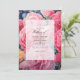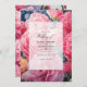 Bubblegum pink, cotton candy and strawberry red floral beach wedding invitation with accents of gold. Ideal for a garden wedding.