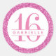 Pink Glitter border with bubblegum pink coloured customisable birthday age and name text. Great accent for elegant and modern princess birthday for little girls, Bat Mitzvah celebrations, sweet sixteen, 16th birthday parties, Quinceaneras, baby showers, bridal showers, and weddings. The artwork is a printed image of glitter - no real glitter is used. Visit the Paper Grape Zazzle shop for coordinating party goods, stationery, and invitations.