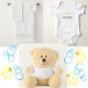 This personalised baby's bodysuit with blue bubbles and yellow baby ducks captures the essence of playfulness and innocence. It creates a cheerful and charming visual appeal that is sure to bring smiles to everyone's faces.