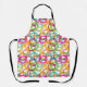 This apron has a geometric design of three circles nested together and spread throughout the design in several colours.