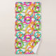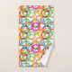 This towel set has a geometric design of three circles nested together and spread throughout the design in several colours.