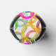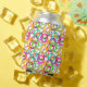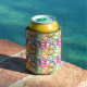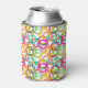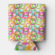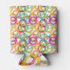 This can cooler has a geometric design of three circles nested together and spread throughout the design in several colours.