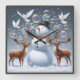 **Snowman Blizzard Clock:** ☃️ Whimsical winter wonderland! Snowman & his bubbly buck deer friends brave a blizzard of colourful bubbles, doves flutter. Perfect for kitchen, living room, fireplace, hunter's/fisherman's den. **Buy now and add magic to your home decor!**