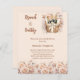A modern, stylish and glamourous invitation for a Bubbly brunch Bridal Shower. Cream, peach coloured background, decorated with a basket with flutes, sparkling wine flasks and beige, cream coloured flowers. Personalise and add your party details.