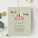 A modern, stylish and glamourous invitation for a Bubbly brunch Bridal Shower. A sage green coloured background with pink roses, a sparkling wine flask and a flute. Personalise and add your party details.