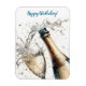 A beautifully illustrated image of a champagne bottle being poured into a crystal glass. The champagne is bubbly and sparkles in the light, with droplets of liquid splashing around, creating an energetic and celebratory atmosphere.