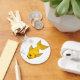 A charming little goldfish blowing blue bubbles. The goldfish gives the appearance as if it is really floating. Cute fish design!