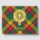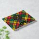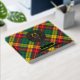 Clan Buchanan crest badge surrounded by a strap and buckle over tartan background. Custom front, back and spine text.