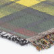 A quality printed throw has its advantages. This is a much finer weave throw than its loopier cousins, and though lighter, it is worth the investment for custom room accessorizing. The back is much prettier than the typical brown, and the fringe on the long sides very vivid, the selvage nicely done. Before photographing, I washed the throw in cold water, delicate, with a thicker woven throw the same size. On tumble dry low, this throw was dry in half the time as the other. This is a very practical quality if you use throws for furniture covers or to wrap up in frequently. The sleekness of the fabric makes it a great layer for accenting or protecting without the feeling of sitting on too much stuff. Perfect for napping or when you feel a light chill coming on. The color printing is beautiful and on this fabric, matched the design and color of my Photoshop image. This is an advantage for blending room fabrics and colors. The fringe on the short sides prints the colors from the design image and therefore varies from the side fringe. I streaked a white fractal line through the plaid pattern to give the illusion of weaving. This printed as crisp as an illusory thread, and put some white in the short side fringe, showing another advantage of print vs loomed- for artistic purposes, line lines, detail, and color integrity can be planned and preserved. My loomed throws have color limitations and more of a needlepoint texture. Print throws reproduce an exact image. The throw felt a little stiff straight out of the package, but this went away in the first delicate wash. Of course I searched the wash water for ink or bleeding and there was none.