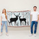 Pretty nature throw blanket features a white birch forest with pale blue background, ferns, dandelions, and a big black silhouette deer buck and doe!