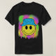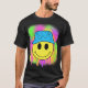 90s style smiley wearing a bucket hat, with a paint splatter background
