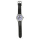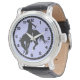This wrist watch features a black silhouette image of a cowboy on a bucking bronco. The image is placed on a light blue background, and is encircled with black numbers and minute segments to make it easy to read.
