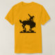 A bucking bronco symbol on the front, and Sagittarius, or bowman on the back, and you can choose any background colour. There's a place on the back where you can put your name. Works on all sizes.