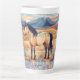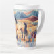 The 'Buckskin Horse Pink Blue Purple Girls Personalised' latte mug brings the beauty of the equine world into every sip for teens and pre-teens who dream of horses. Featuring a graceful buckskin horse surrounded by delicate desert flowers, the vibrant pink, blue, and purple tones evoke a sense of calm and joy. The mountain backdrop adds a touch of adventure, making it the perfect mug for cosy mornings or creative moments. Personalise it with a name, turning it into a treasured keepsake for any horse-loving girl.