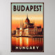 • This stunning vintage-style travel poster captures the enchanting nightscape of Budapest, Hungary. The iconic Hungarian Parliament Building and Széchenyi Chain Bridge are illuminated in warm, golden tones, casting a mesmerising reflection on the calm waters of the Danube. With its retro charm and rich, deep colours, this poster is perfect for those who appreciate the magic of European cityscapes and the allure of Hungary’s capital at night.