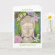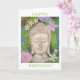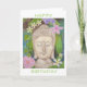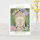 Pretty Buddha garden statue face with white flower on this birthday card.