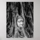 Black and white poster of a head from a Buddha statue. The tree has grown around the head. From Wat Mahathat, Ayutthaya, Thailand