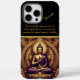 A tranquil Buddha sits gracefully, meditating amidst ornate patterns of gold and deep purple. MONOGRAM