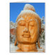 Face of a carved wood Buddha with snow on it at Sedona, Az.