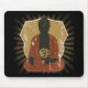 Buddha silhouette sits cross legged in dark orange robe meditating with the Devanagari Om Symbol on his palm! Half tone background shield background creates a powerful yet peaceful Buddha gift!