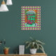 Buddha Pop with Patchwork Borders in Green and Red Poster