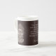 This mug is imprinted with a Bach Solos Suite for Cello. It was purchased as a thank you gift for a professional cellist friend who often performs this work. The cup is made of a high-grade ceramic and is fairly light. The walls are not too thick and it is a small to medium size. It's well finished, has a high-gloss glaze, and looks very elegant. The Bach Solo Suite score on the example I received was clear and had high contrast. Even though the staffs were small, the music was easy to read. The cellist who received this cup immediately knew what the music was as soon as she set eyes on it.