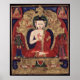Vairocana is a cosmic buddha from Mahayana and Vajrayana Buddhism. Buddha Vairocana, the “Resplendent One,” features several of his defining characteristics, including his white colour, performing the teaching gesture (dharmacakramudra), and sitting on an elaborate lion throne. The two bodhisattvas flanking him, one green and carrying a sword, the other red and holding a lotus, and with teachers in the upper corners.