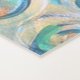 A vibrant depiction of a serene Buddha face, with intricate patterns and a mix of vivid colours like blue, green, and orange. The peaceful expression and closed eyes exude a sense of tranquillity and spirituality.