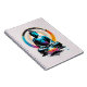 A Buddha statue is sitting amidst a colourful Zen circle, with a lotus flower.