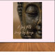 Nice photo of Buddha bust with his famous quote: A JUG FILLS DROP BY DROP. Brown and beige colours with script lettering.
