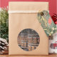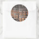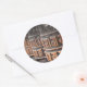 Round photo sticker with brass buddhist prayer wheels closeup in the temple Swayambunath in Kathmandu, Nepal.