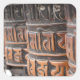 Photo sticker with brass buddhist prayer wheels closeup in the temple Swayambunath in Kathmandu, Nepal.