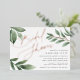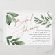 Simple and elegant bridal shower invitation for modern brides-to-be features "bridal shower" at the top left in chic rose gold foil script typography with soft green watercolor leaves and branches. Personalise with your bridal shower details in grey lettering. A modern bridal shower invitation in a boho nature inspired colour palette with real foil accents.