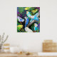 Print of a painting of colourful pet budgerigars or parakeets by Carolyn McFann of Two Purring Cats Studio. A great poster print for any bird lover.