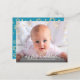 “My First Hanukkah.” A playful visual of faux gold foil snowflakes, Stars of David and white handwritten script typography, overlaying the photo of your choice, help you usher in Hanukkah and New Year. On the back, additional champagne faux gold snowflakes overlay a soft, turquoise blue background. Feel the warmth and joy of the holiday season whenever you send this stylish and modern personalised budget photo greeting card. Perfect for the newly proud parents to send to someone special!