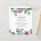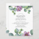 A modern and elegant class of 2022 graduation party invitation featuring botanical eucalyptus greenery succulent in green and purple watercolor. This trendy design is perfect for announcing your grad party and inviting your guests.