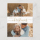 Modern, Minimalist, Elegant „Merry Christmas” Script 2 Photo Collage Christmas Holiday Postcard in gold and white. This festive, clear minimalist, twoo (2) family photo holiday card template features a pretty grid photo collage and saying „Merry Christmas”! The „Christmas” greeting text script is written in a hand lettered swirly swash tail font type. On the back side one photo and your message. Pretty greeting card for your family and friends in Winter Holiday season.