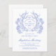 An elegant French vintage blue floral crest takes centre stage on this timeless birthday invitation. Ornate, formal and very feminine will make any birthday lady feel very special. Coordinating party supplies are available.