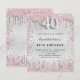 A modern, stylish and glamourous invitation for a 40th birthday party. A faux silver looking background, decorated with pink and faux silver glitter dust. Personalise and add your name nad party details. Number 40 is written with a balloon style font, script.