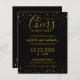 Ruby Anniversary invitation with gold glitter confetti and cheer to 40 years typography on a black background. Personalise the black and gold invitations with details.
