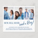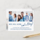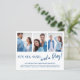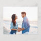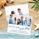 Engagement announcement cards are perfect for when you don’t have a wedding date set, but you can’t wait to share the good news with your friends and family! This beach themed budget card on cheaper paper features 3 photos of the happy couple on the front, with a trendy modern brush script font duo for the announcement. There is a fourth photo on the back.