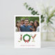 Modern traditional Christmas simple winter holiday family photo collage budget affordable card featuring JOY floral script lettering with red holly berries, fir branches wreath, and a coral red bow. ++++++++++ Personalise this with your family pictures and text on both sides! ++++++++++ PLEASE READ THIS BEFORE PURCHASING! This is a budget affordable wedding card printed on a paper sheet (each sheet has one card). ++++ For the best rapport price-quality, our advice is to choose the Semi-Gloss paper type (it is thick enough to be used for stationery) ++++ If you need envelopes, choose the ENVELOPE OPTION. +++ Double-check all the information and spelling of your text because you will receive exactly what you see - no one else will check anything before printing. ++++ This card is designed for size 4.5" x 5.6". In the case you choose another size of the card and text goes outside page, everything needs to be fixed before adding the product to cart. Please ask Live Design Service for help.
