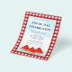 It is decorated with watercolor watermelons and a blue sky on a red and white buffalo check background.