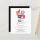 Budget 50 and fabulous 50th birthday invitation with watercolor-illustrated makeup design. Designed and illustrated by Kristine Lee Designs www.kristineleedesigns.com