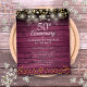 Featuring string lights and delicate golden love hearts confetti on a rustic burgundy red wood background. Personalise with your special fifty years golden anniversary information in chic lettering. Designed by Thisisnotme©