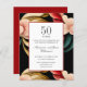 This design features an elegant botanical pattern of pink, gold and burgundy flowers and leaves in vintage watercolor palette on a black background with your 50th wedding anniversary details displayed in a modern combination of cursive and serif fonts over a white frame with a chic dark red border. Perfect for elegant or formal anniversary celebration, or outdoor or garden Vow Renewal with romantic vibes.