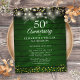 Featuring string lights and delicate golden love hearts confetti on an emerald green rustic wood background. Personalise with your special fifty years golden anniversary information in chic lettering. Designed by Thisisnotme©