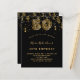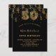 A modern, stylish and glamourous invitation for a 50th birthday party. A black background, decorated with confetti. The name is written with a modern hand lettered style script. Personalise and add your party details. Number 50 is written with a trendy balloon style font, leopard pattern.