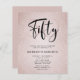 Budget 50th Birthday Modern Script Rose Gold Glitter Ombre Party Invitation... Our affordable modern script 50th Birthday party invitation features a background of blush rose gold glitter ombre overlaid with black script text spelling out "Fifty" on top of the number 50 in dusty rose ink. Your party invitation text follows. All text (except for the "fifty" and "50" text graphics) can be easily revised with your own details on the personalisation template.